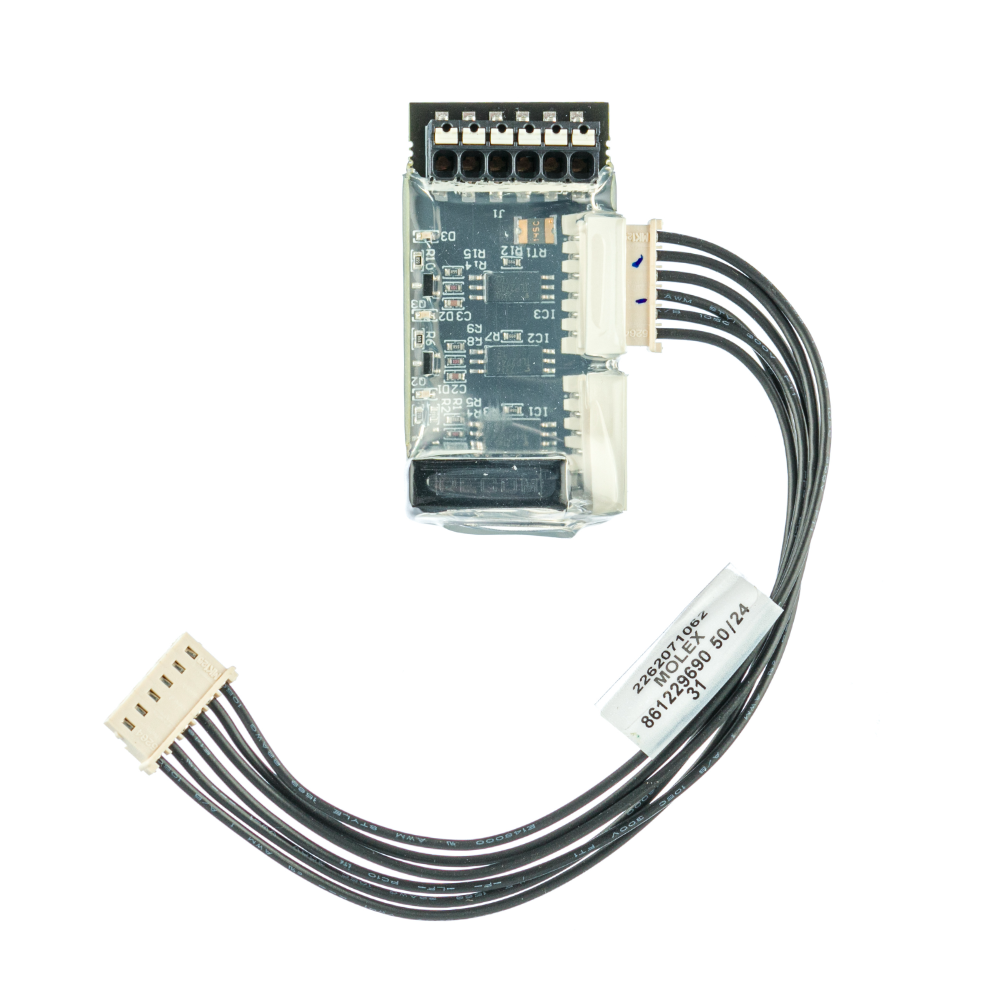 A100-CIF-01 KONE KCM interface board for A100-PFD protector. Speeds up installation and reduces wiring mistakes.