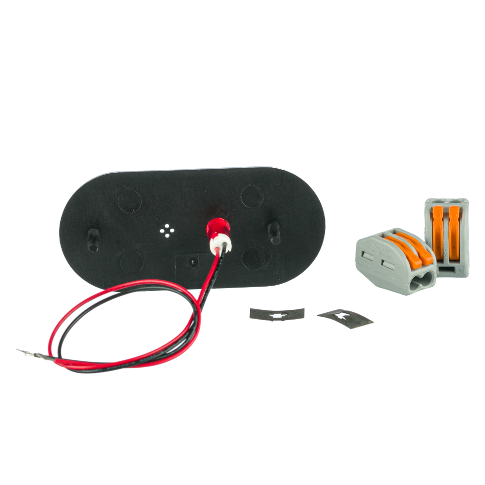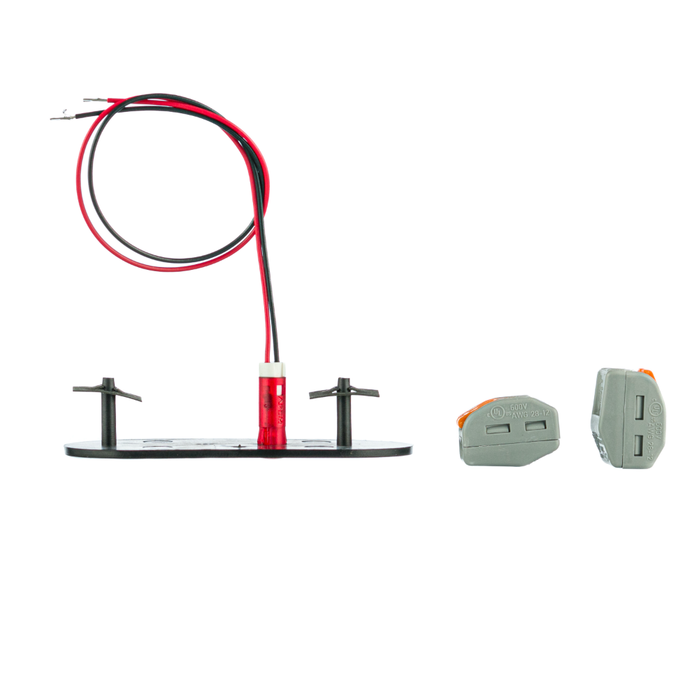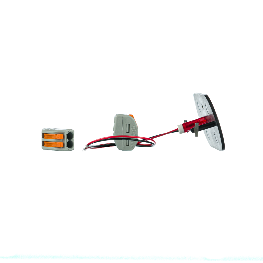 A100-PVI pit flood visual indicator for mounting in the COP or hall panel. Provides a clear visual indication when pit flooding has been detected. Includes FLOOD insert with red LED, two spring nuts, and two WAGO® lever nuts.